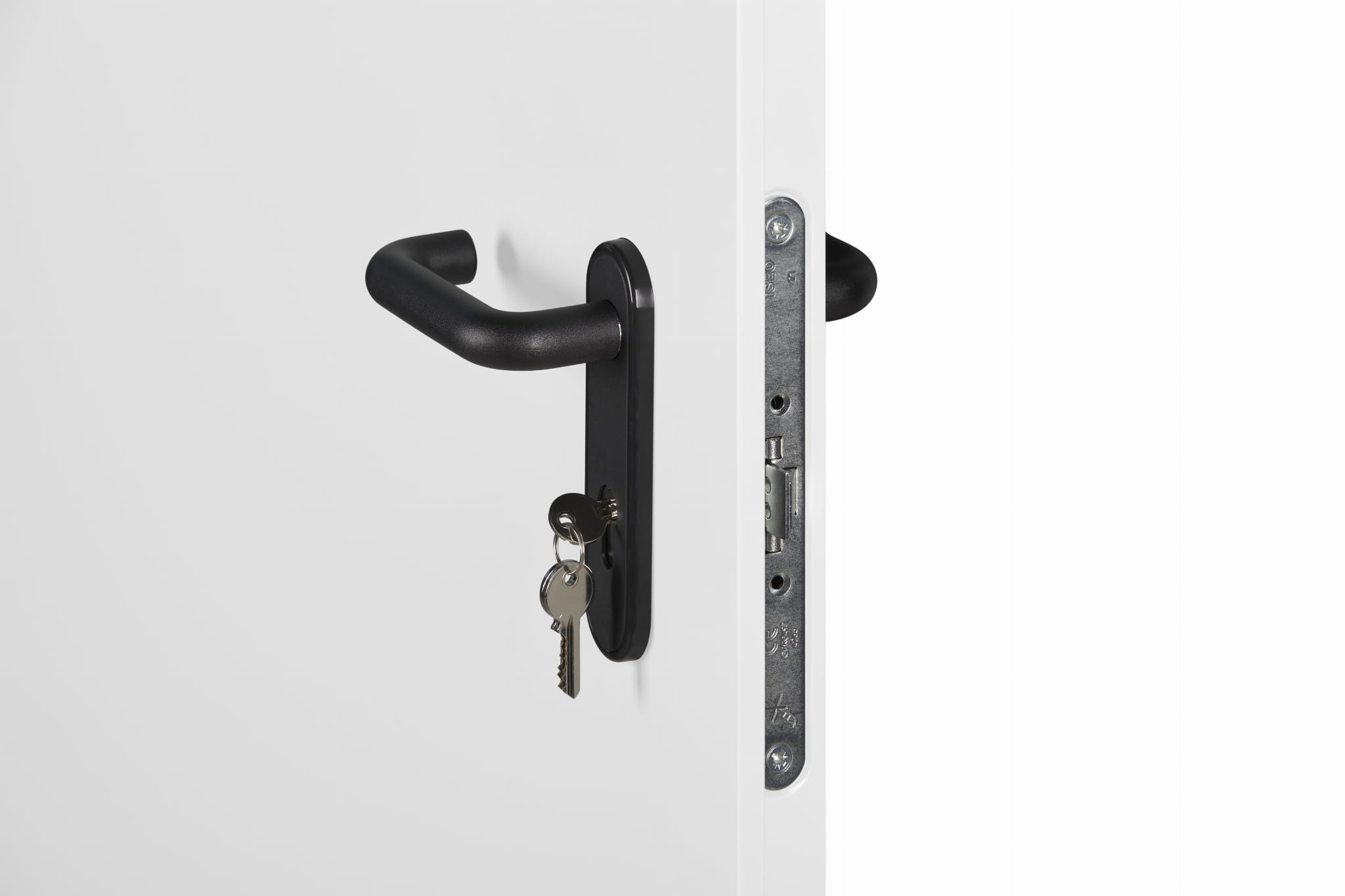Bezpieczeństwo drzwi stalowych płaszczowych ppoż. zapewnia bolec antywyważeniowy, zamek zapadkowo-zasuwkowy z kluczem budowlanym, a także klamka przeciwpożarowa z rdzeniem stalowym.