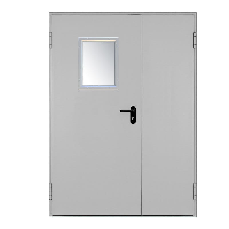 Drzwi przeciwpożarowe EI60 dwuskrzydłowe 160’ z przeszkleniem 300x400