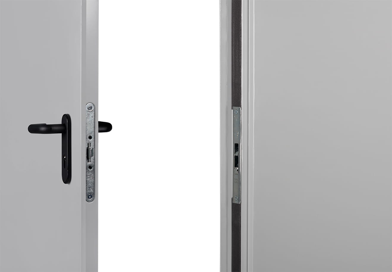 Bezpieczeństwo drzwi stalowych płaszczowych ppoż. zapewniają dwa bolce antywyważeniowe, zamek zapadkowo-zasuwkowy z kluczem budowlanym, a także klamka przeciwpożarowa z rdzeniem stalowym. Drzwi przeciwpożarowe dwuskrzydłowe mają ponadto funkcję automatycznego ryglowania skrzydła biernego.