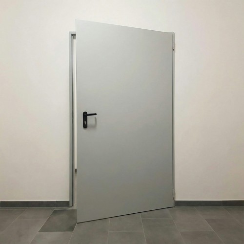 Skrzydło drzwiowe drzwi EIS30 wykonane jest z blachy stalowej ocynkowanej o grubości minimum 0,7 mm i wypełnione wełną mineralną o gęstości 180 kg/m³, dzięki czemu zapewnia wysoką odporność ogniową oraz stabilność konstrukcji.