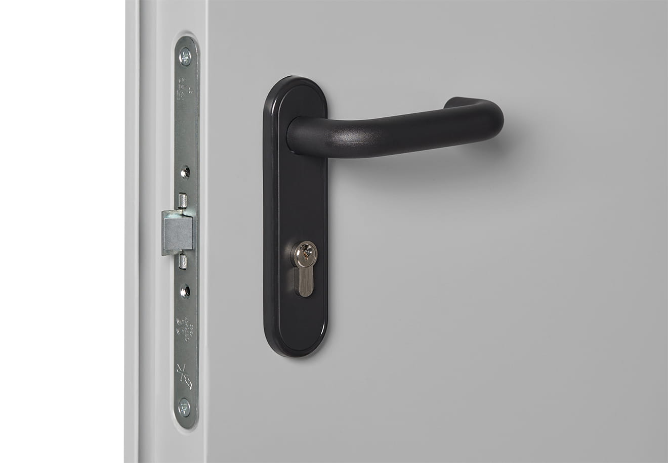 Bezpieczeństwo stalowych dymoszczelnych drzwi przeciwpożarowych zapewnia bolec antywyważeniowy, zamek zapadkowo-ryglowy z kluczem budowlanym, a także klamka przeciwpożarowa.