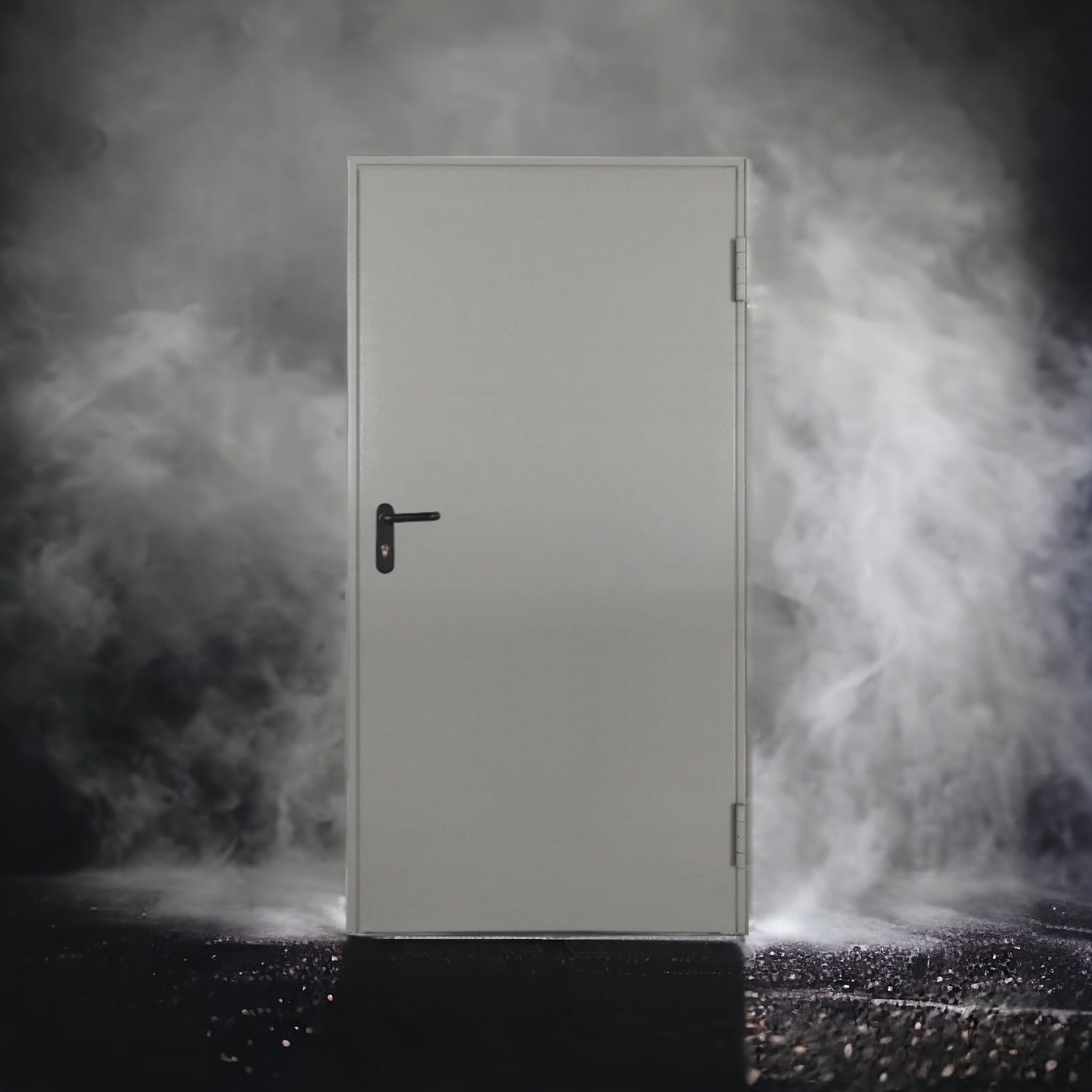 Bezpieczeństwo stalowych dymoszczelnych drzwi przeciwpożarowych zapewnia bolec antywyważeniowy, zamek zapadkowo-ryglowy z kluczem budowlanym, a także klamka przeciwpożarowa.