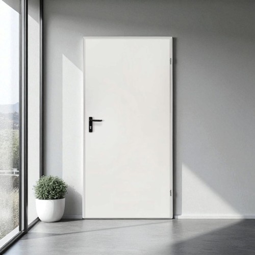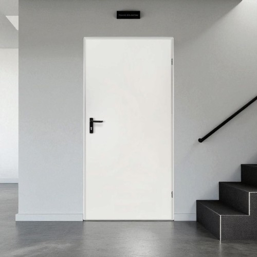 Drzwi techniczne to drzwi stalowe płaszczowe o grubości skrzydła 53 mm wykonane z blachy stalowej ocynkowanej. Ich wypełnienie stanowi płyta termoizolacyjna z polistyrenu ekspandowanego EPS. Skrzydło drzwiowe z 3-stronną grubą przylgą wykończone jest w kolorze białym RAL 9010.